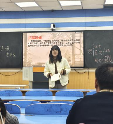本部高一语文组的王俊格老师,凭借自身扎实的语文专业功底,精心构思了《声声慢》的教学设计。在实际教学过程中,她不仅引导学生深入挖掘文本内涵,而且在教学方法和环节设计上大胆创新,展现了青年教师的专业素养与教学风采。