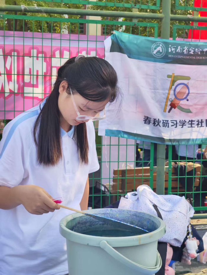 走近研习社摊位,色彩绚丽的漆扇率先抓住眼球。社员们点漆入水,一刹那素白扇面上便勾勒出别具风采山水、描绘出与众不同花鸟,点点大漆晕染,让传统漆艺焕发生机。“我能试试吗?”不时有同学驻足询问,在社员的耐心指导下,大家亲手调配颜料、描绘图案,不一会儿,一把把充满个性的漆扇就新鲜出炉,欢声笑语在摊位前不断回荡。