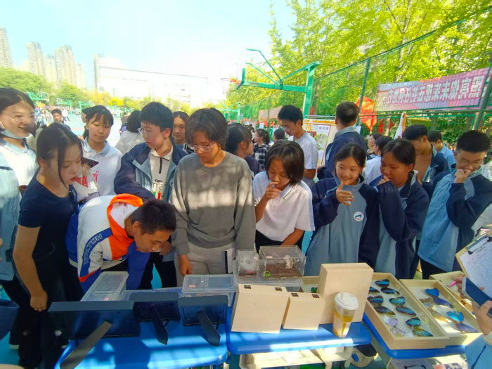 围在展板前的高二同学刘同学频频点头:“以前总觉得‘生物’是一门需要死记硬背的学科,今天看了这些照片,才发现生物可以这么‘活’——能亲手实践我们所学的内容并持续完成项目,这种成就感特别强!”