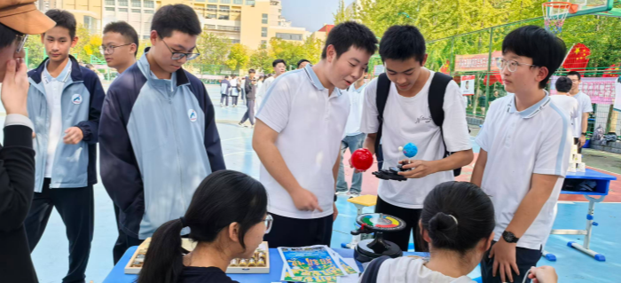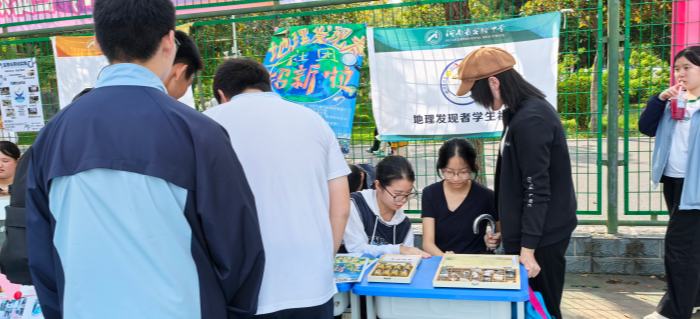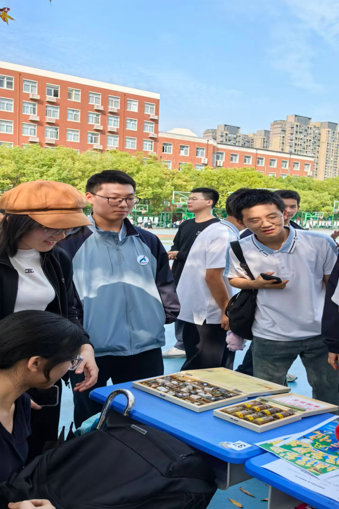 一、现场直击:展台变身自然博物馆展台之上,陈列着社团的珍贵收藏:各种各样的土壤标本并列,无声讲述着大地的故事;一旁,是各类矿物岩石,从花岗岩到沉积岩,每一块都仿佛封印着亿万年的地球史诗,这些沉默的“讲述者”将他们引入一个充满奥秘的地理世界。一旁的三球仪更是牢牢抓住了过往学生的目光,在社团成员为大家演示之后,几乎所有人都露出了惊奇赞叹的表情,大家纷纷上手尝试,切身感受自转公转的区别,以及宇宙的奥秘。