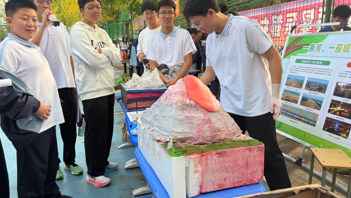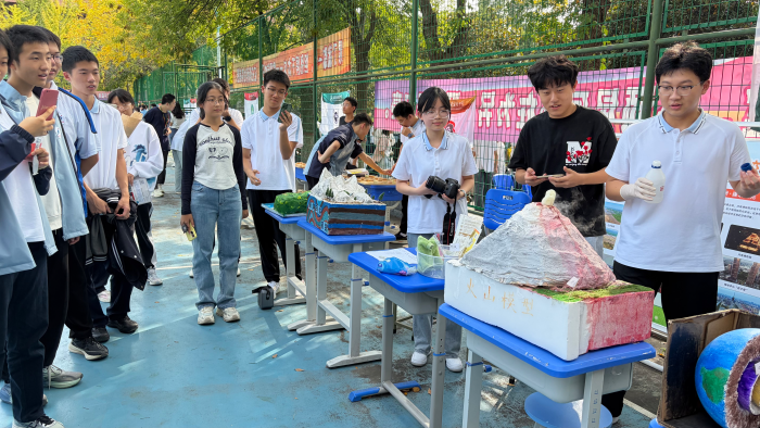 地理实验区:火山喷发的震撼现场“快看,岩浆流出来了!”在地理实验区,一场模拟火山喷发的实验将抽象的地质知识转化为可视的震撼场景。社团成员精心调配实验材料,当“火山口”涌出炽热的红色岩浆,沿着预设的坡道蜿蜒而下时,现场爆发出阵阵惊叹。这场演示不仅再现了火山喷发的壮观景象,更让同学们直观理解了岩浆成分、喷发机理等专业知识,将课本上的平面知识变成立体生动的实践课堂。
