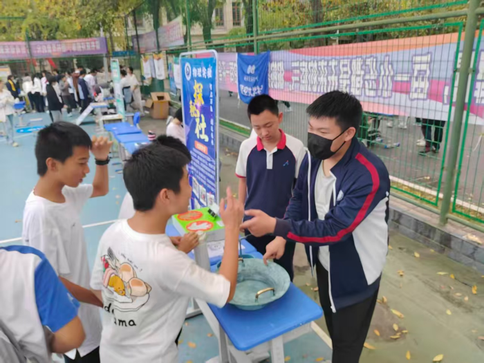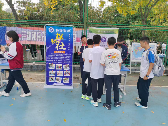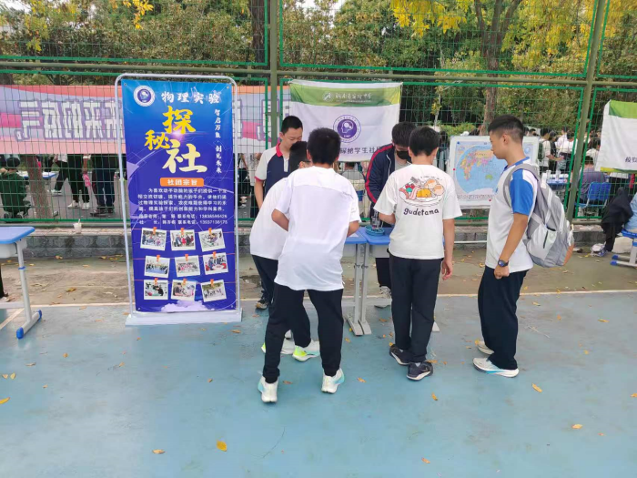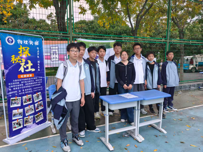 为激发青少年对科学实验的兴趣,培养实践创新能力,2025年9月29日下午,河南省实验中学物理实验探秘社在校园篮球场举办了一场别开生面的招新活动。活动以“加入我们,一起了不起”为口号,通过趣味实验展示与互动体验,吸引了众多学生驻足参与,现场气氛热烈非凡。