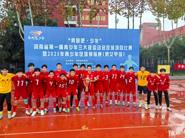10月31日至11月7日,苏鑫、朱海老师指导高中男子足球队,在“奔跑吧·少年”河南省第一届青少年三大球运动会足球项目(男子甲组)比赛中凭借稳定的技战术发挥和团队配合夺得冠军。