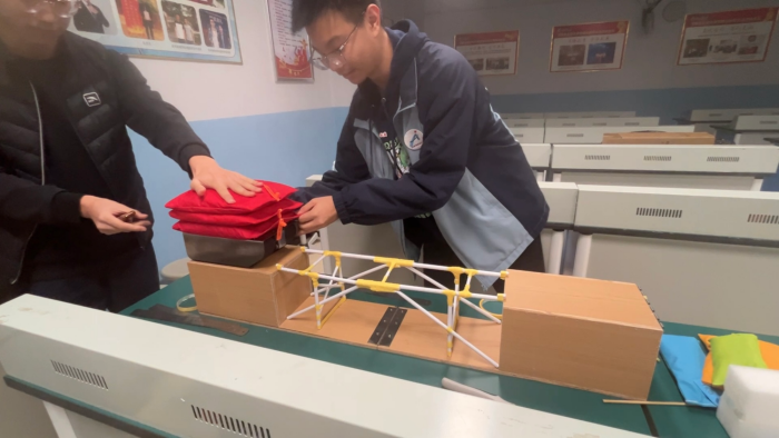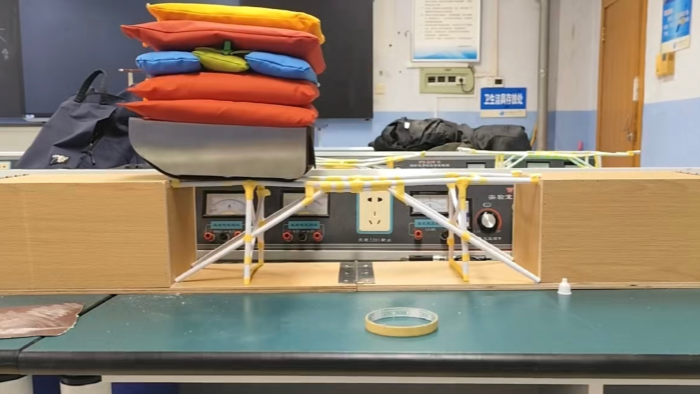 本届赛事共设有水火箭比高、气弓箭打靶、铁丝陀螺比久、纸桥承重、新能源小车竞速、抛石机攻城、“鸡蛋”撞地球、气垫冰壶、自制无人机挑战赛、人工智能主题挑战赛等10个比赛项目。“格物社”参赛的“纸桥承重”项目,要求参赛队伍仅使用25张A4纸和10毫升的胶水,设计并制作一座质量轻、跨度大、承重能力强的纸桥。这不仅是对学生物理学结构力学知识的检验,更是对动手能力、工程思维和耐心的极致考验。