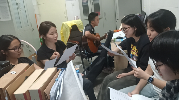 同学们一起讨论、听歌、试唱