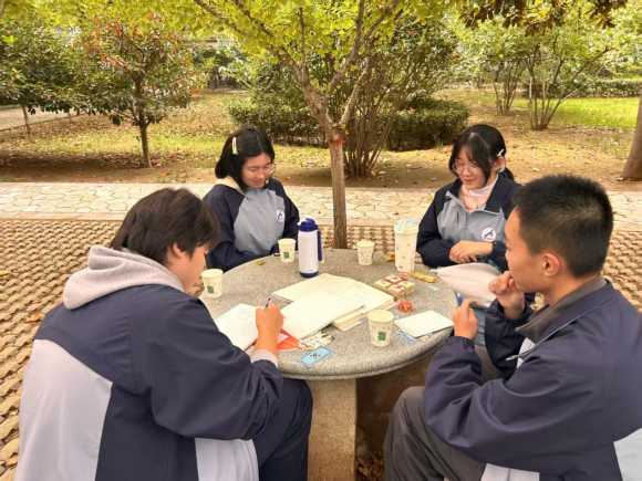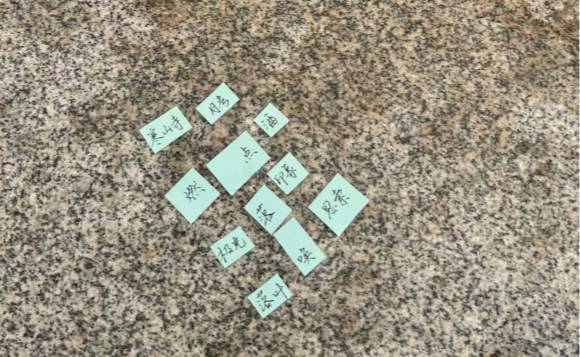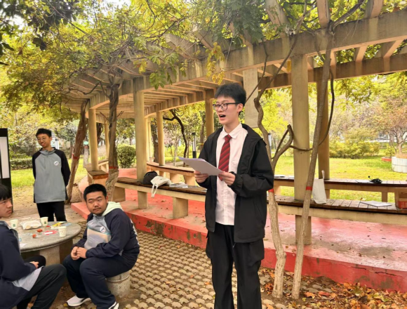 秋漫亭廊,风溯流光。词语拼接成诗句,热爱熔化在笑意里,微冷的秋日不再寒凉。同学们个个身怀绝技,利用有限的诗词意象创作出各具创意的诗句,大家相互欣赏,笑声、赞语此起彼伏。