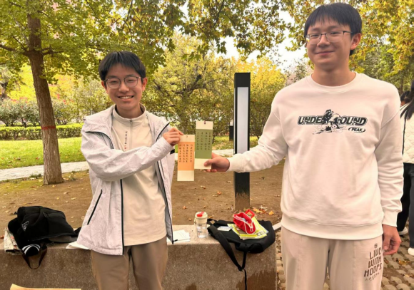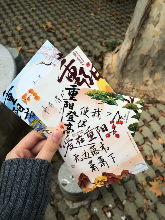 十六载春秋筚路蓝缕,社长和社团干部相继致辞,新一届干部们与新社员相互握手致礼,成员们领取写有诗句的卡片,上下句配对,两两结为“诗友”,在诗趣中寻找志同道合的友人。诗卡片上侯雨辰同学飘逸的书法和重阳节的佳句名篇交相辉映,尽显文化雅趣。