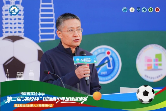 河南省教育厅党组成员、副厅长杨光在讲话中对活动的举办表示热烈祝贺,充分肯定了我校在校园足球领域的示范引领作用。他指出,足球作为世界第一运动,是跨越国界的文化桥梁,本次国际赛事的举办既是河南校园足球高质量发展的生动实践,也为中外青少年交流搭建了重要平台,希望我校持续打造精品赛事,树立“河南标杆”。