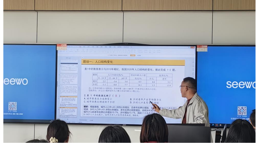 活动伊始,谢京川老师以 “高考试题中的人口问题” 为主题展开分析。他聚焦多年高考题中的抚养比问题,结合详实的人口结构数据表格,如 2010 年与 2020 年我国人口结构变化的对比数据,深入剖析了劳动年龄人口、少儿抚养比、老年抚养比等关键指标的变化趋势。通过对这些数据的解读,谢老师引导老师们理解人口结构变化对社会经济发展的影响,同时梳理出高考中人口类题型的命题规律与解题思路,为教师们在后续教学中培养学生的数据分析能力和地理思维提供了切实参考。