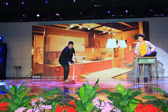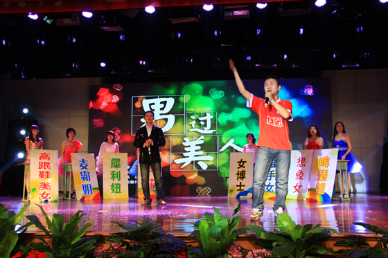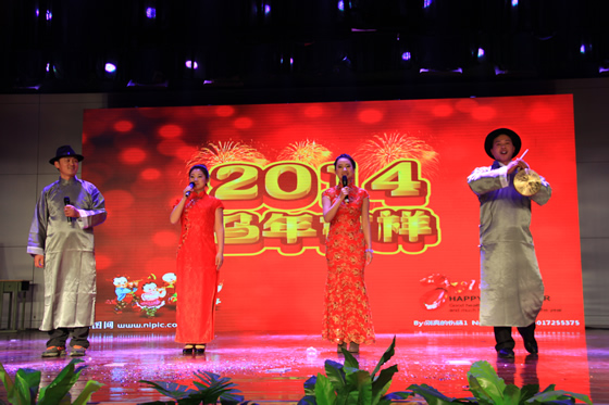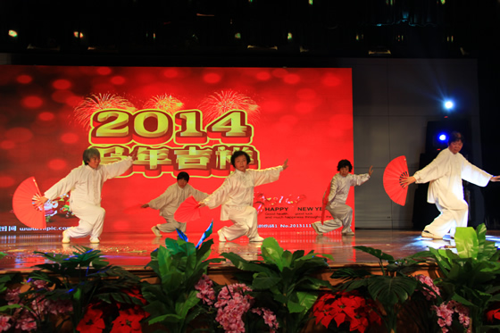 晚会四位主持人分别是50后、60后、70后和80后的教职工代表,强烈的时代特征和鲜明的风格差异令大家耳目一新,身着晚礼服的“四代实验人”华彩登场立刻引来热烈掌声。第一个节目是全体校领导和中层干部带来的配乐诗朗诵《祝愿》,这是学校专门为全体教职工创作的诗篇,回顾2013的不平凡的历程,跋涉的足音震撼着每个人的心灵,炽热的情怀唤醒彼此的记忆,强烈的责任感引起全场的共鸣,许多老教师热泪盈眶,昂扬深情的诗朗诵像奔涌的激流将晚会的主旋律推向新的高度。接下来的节目创意新鲜、精彩纷呈,有热情奔放的舞蹈,有欢快麻辣的小品,有浪漫隽永的青春话剧,有高亢嘹亮的演唱,有奇幻酷炫的魔术,还有退休老干部带来的精彩的武术表演《莲花太极扇》,一招一式、精神抖擞,引起全场观众无限的敬意和热情的掌声!