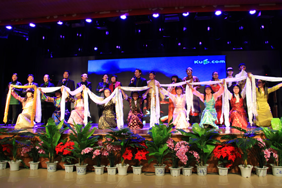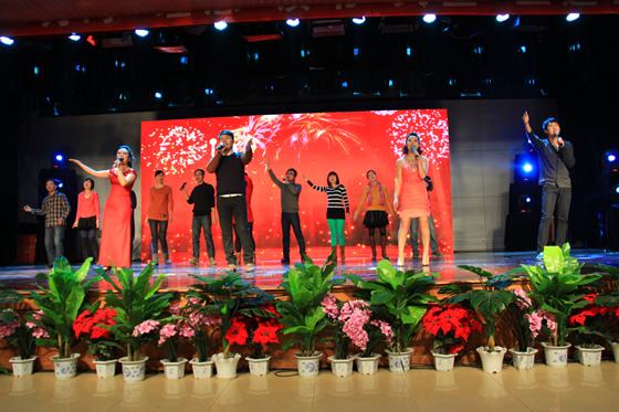 2013年12月31日晚7点,我校“与梦想同行”教职工迎新年联欢会在艺体中心报告厅隆重举行,全校教职工身着节日盛装欢聚一堂,同庆佳节,共迎新春。