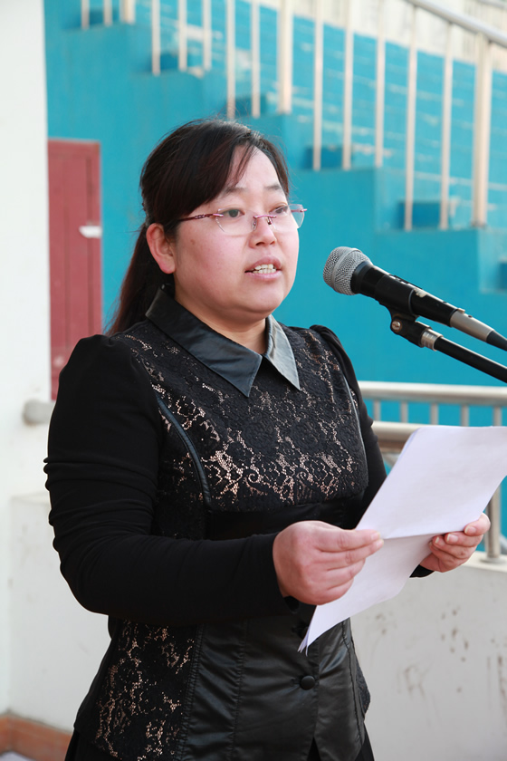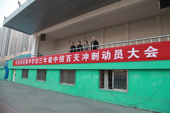 2014年3月17日早晨,我校在运动场隆重举行初三年级中招百天冲刺动员大会。大会由学生处主任冯艳主持,学生代表邱馨宇、教师代表杨雪珍、初三年级长李汀洁相继发言,马玉霞校长发表讲话。