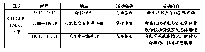 我校定于5月24日(周六)上午举行教育咨询接待日活动,热诚欢迎广大学生和家长来校参观咨询。
