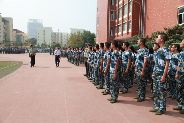 7:00,迎着清晨的曙光,经过一周阳光与汗水洗礼、纪律和意志锤炼的全体2014级高一新同学们已经在信息工程大学老校区整装列队,各个方队都是口号震天,队形整齐,英姿飒爽……今天是汇报表演的日子,大家都攒着一股劲——“首战用我,用我必胜!”这里每个“新兵”的集体荣誉感都在军训中经过了锻造和淬火,今天要为新集体争得第一份珍贵的荣誉!