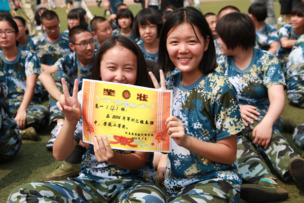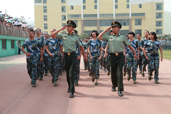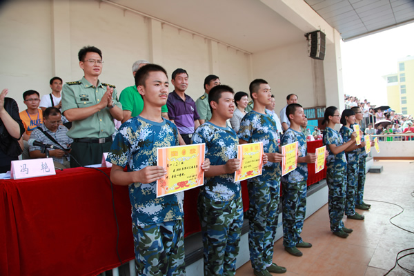 8月20日上午,我校在运动场隆重举行2014级高一新生军训汇报表演暨总结表彰大会。