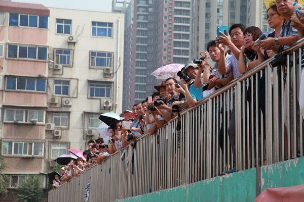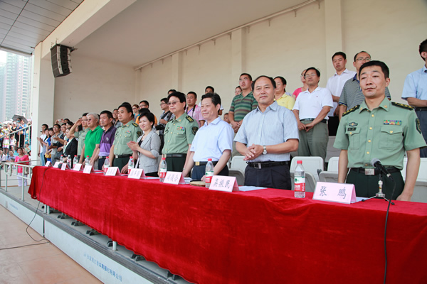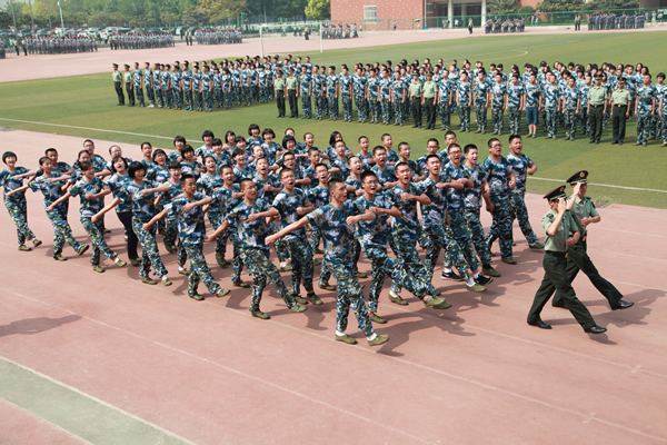 10:00,省实验中学运动场,艳阳当空,天气炎热,置身于队列中的教官和同学们个个热汗淋漓,但是所有方阵在教官的口令指引下干净利落地完成动作,刚毅的脸庞、坚定的目光和挺拔的身姿无不昭示着每个人和每个集体的信心和勇气!