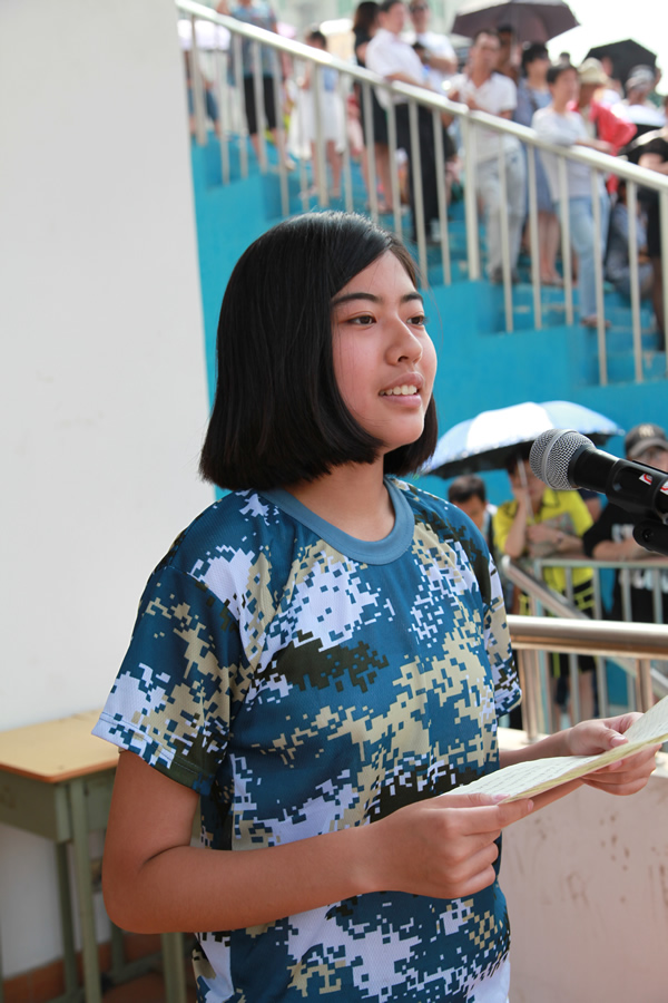 校党委阎书记代表学校检阅方阵,嘹亮的口号和饱满的斗志再次把现场气氛推向火热的顶点!同学们的昂扬的精神和优秀表现赢得了全体领导、老师和家长们热烈的掌声!队列表演开始,起步,正步,敬礼,班级誓言……领导欣喜的目光,家长兴奋的喝彩,老师热烈的鼓掌,一起交汇成一幅充满张力的图片——传递着力量、信念、梦想、奋斗和光荣!当每一个方队正步经过主席台,全体观摩人员都报以由衷的喝彩!接下来是学生代表发言和吴振民副校长步讲话,师生的话语为大家难忘的军训回顾和总结,对新学期新征程展望和激励!