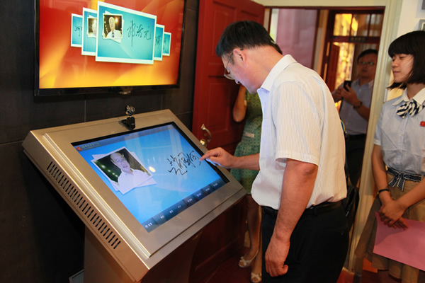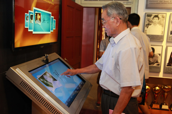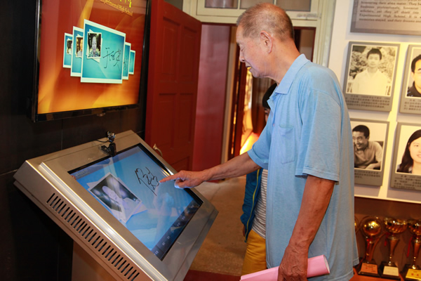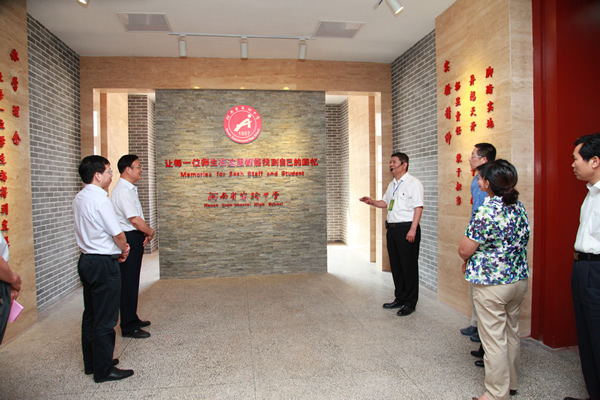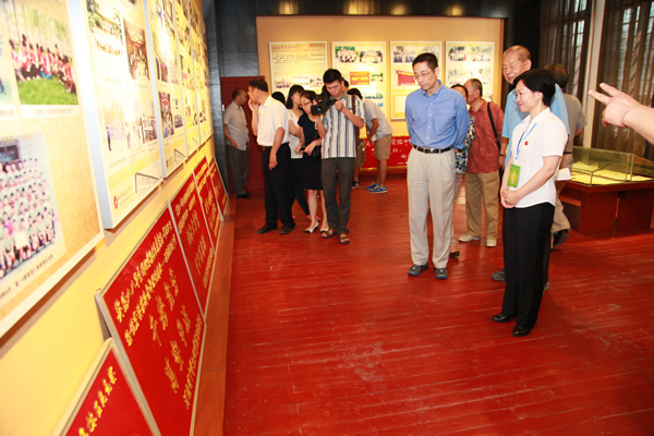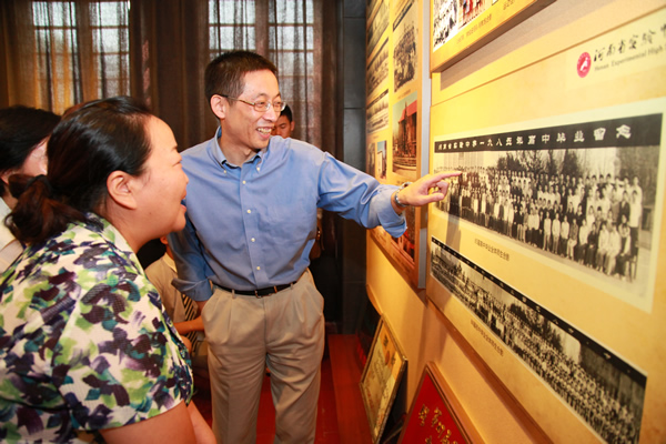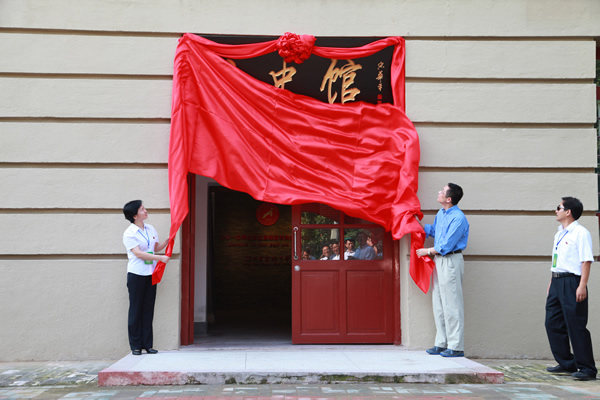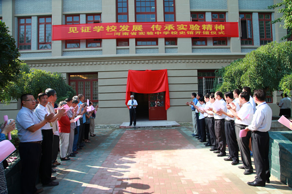 2014年9月6日,我校老教楼前彩绸高挂,喜气洋洋,老中青三代实验人欢聚阶前,共庆贺河南省实验中学校史馆开馆仪式。马玉霞校长与施一公校友共同为校史馆揭幕。彩绸飘落之处,省书协主席宋华平手书“校史馆”的黑漆匾额显出令人惊叹的光泽和气蕴,领导、嘉宾和老教师们含着热泪热烈鼓掌,这一天圆了他们的一个梦,也实现全体实验人的一个深沉的夙愿。