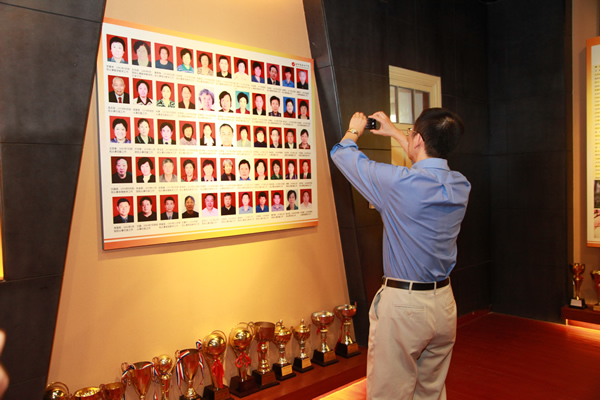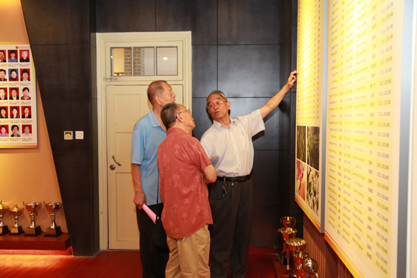 参观中,殷红主任的讲解时时被校友惊喜的发现和老教师的唏嘘感慨打断,这里的一面面奖牌显示着昔日的荣耀和辉煌,一张张照片记录着曾经的青春和激情,一样样实物证明着经久的情谊和眷恋,一段段故事讲述着实验精神的铸造和传承。大家寻找,求问,拍照,争论,激动……时空因为彼此的共同承载而融合在了此时此地。