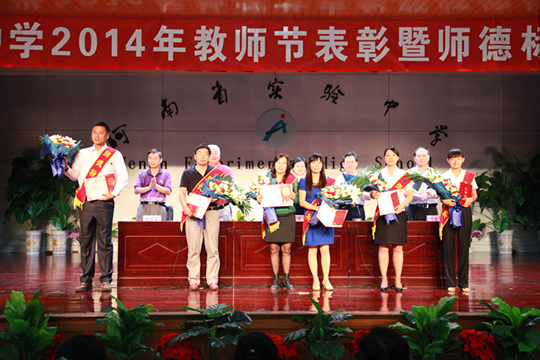 作为一线优秀教职工代表的师德标兵,朱许寒、陈燕红、陈俊伟、焦秋洪、王秀梅和杜洪林等六位老师的先进事迹报告引起全场的强烈共鸣。坚定深刻的职业信仰、博大崇高的育人情怀、催人泪下的追梦历程、坦率真挚心灵体验……萃取于一线的鲜活事例及描述现实的生动故事无不浸透了实验人的精神涵养和职业气质,时时引起全场经久不息的赞叹和掌声,许多老师流下热泪。