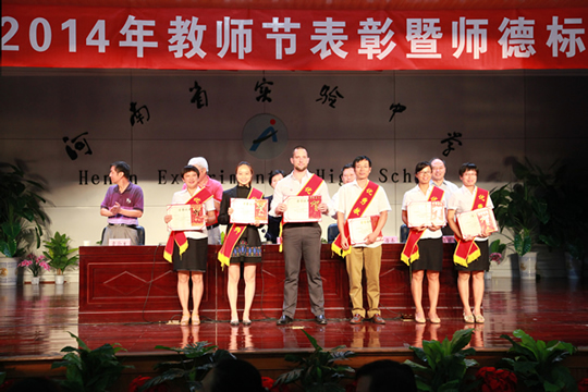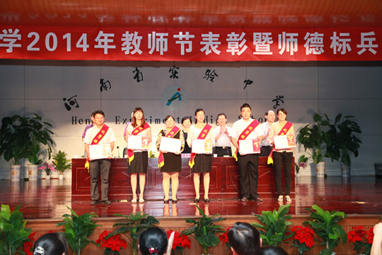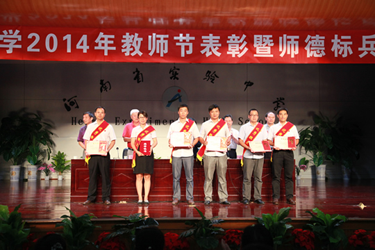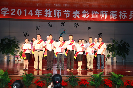 9月10日下午,我校在艺体中心报告厅举行2014年教师节表彰暨师德标兵事迹报告会。校党委书记阎俊合主持大会,大会对我校2013年度涌现出的优秀教职工、优秀党务工作者及县级集体进行表彰和奖励。