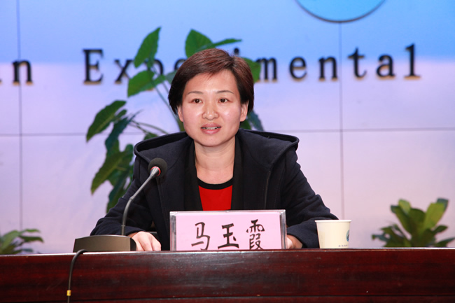 马玉霞校长在会上作重要讲话。马校长首先代表学校向全体教职工致以美好的新春祝福。就几位校领导的工作部署进行了总结并提出了严格要求。就新学期深入落实好学校的办学理念、不断提高教育教学水平,马校长提出了三点意见: