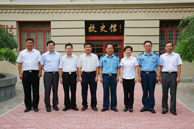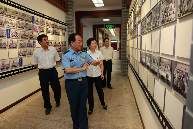 仪式后,与会领导还共同看望了第一届航空实验班师生并在强五广场的战机前集体合影。参观校史馆过程中,领导们对我校的风雨历程和辉煌成绩赞不绝口并对学校领导班子给予充分肯定和高度评价。