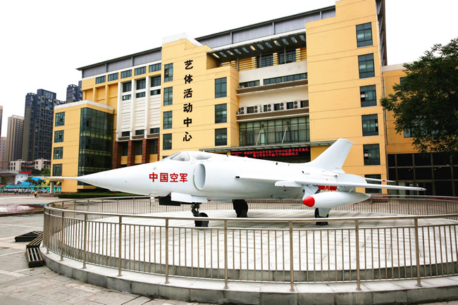 这是一架真正的战机!一架1984年和1999年两次参加国庆阅兵、屡立战功、享誉国际、见证我国航空事业发展的第一代超音速强击机,带着赫赫战功和凌云壮志,今天,正式加入实验大家庭!8月24日,我校新学期开学典礼暨空军青少年航空学校揭牌仪式举行,济南军区空军政治部副主任王建起少将亲手将捐赠书递交给马玉霞校长。重新涂装的威风帅气的“强—5”战机静静地停立在学校喷泉广场,成为实验校园的新宠,也成为一道美丽的风景。师生们共同创意为美丽优雅而今平添雄健刚毅气质的喷泉广场更名,从此就叫:强五广场!