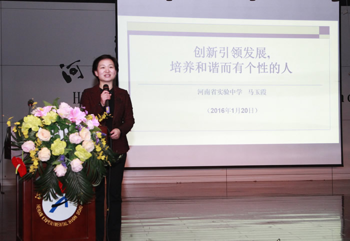马校长作题为《创新引领发展,培养和谐而有个性的人》主题报告