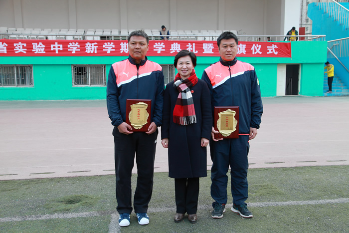 马玉霞校长与主教练窦志刚、苏鑫合影