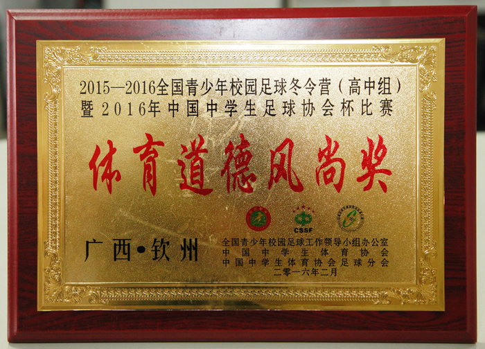 在刚刚结束的2016年中国校园足球冬令营暨中国中学生足球协会杯比赛中,我校高中男子足球队勇夺全国季军,并获得体育道德风尚奖。刘同乐同学被评为最佳射手,李翔宇和刘同乐同学入选最佳阵容,康子昊和刘同乐同学入选中国中学生联队。