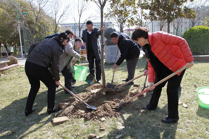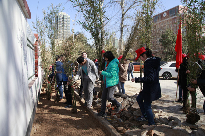 3月11日上午,师生们自行来到学校小花园开展植树活动,共同为春天增添新绿。 为让校园一天天变得更加漂亮,自觉照看、爱护花草树木成为全体师生的心愿。在植树节到来之际,大家的愿望可以实现了,学校购置了垂丝海棠、石楠、金叶槭、竹子及植树工具,大家可以亲手装扮实验校园了! 看,师生们合作植树,是不是实验校园里又一道美丽的风景?