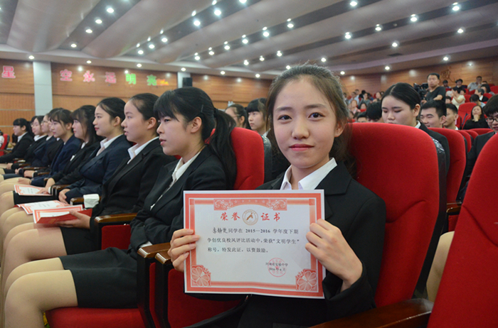 首先,马玉霞校长为2016届全体中日班毕业生颁发毕业证。校党委书记阎俊合、副校长吴振民、副校长王献甫、副校长殷红等领导分别为获得优秀学生奖、优秀学生干部奖、进步学生奖和文明学生奖的毕业生颁发荣誉证书。典礼上,在日留学的学长学姐发来视频表示祝贺与期待;中日班的任课老师们送出温馨的寄语;毕业生代表深情地用流利的日语向学校、老师和家长们致以深深的谢意;高二的学弟学妹们也送上关心和祝福,全场不断响起热烈的掌声。全体毕业生共同深情合唱歌曲《启程之日 》,他们将带着自己的梦想起航,将中国的优秀文化底蕴在国际上发光发彩。
