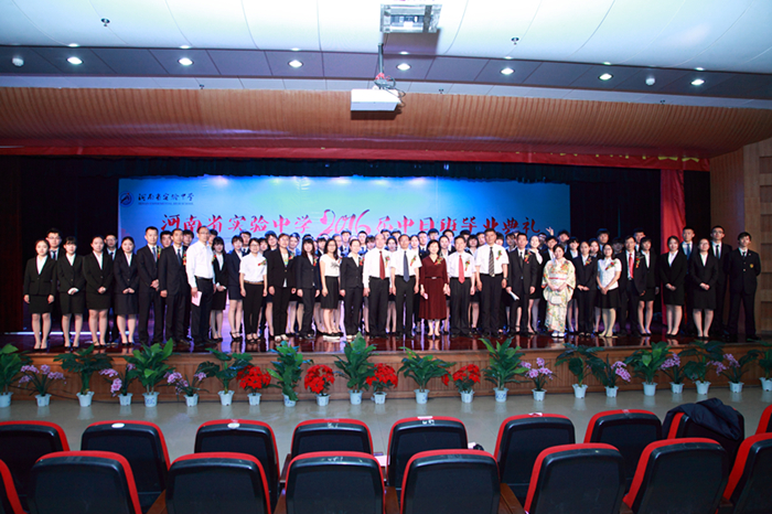 我校中日班是经省教育厅批准、由我校与日本关西语言学院联合举办的中外合作办学项目,也是河南省唯一一家在中学阶段和日本合作办学的项目。从2003年开办至今,中日班受到了师生和家长的一致赞扬,中日班的教育取得了令人瞩目的成绩:同学们不但身心将康成长,而且成绩优异。很多学生高中毕业时日语就达到了二级甚至是一级水平,大批中日班毕业生被日本早稻田大学、东北大学、北海道大学、名古屋大学、大阪大学、东京工业大学、立命馆大学等著名高校录取。