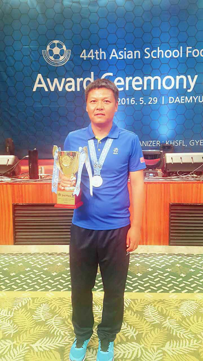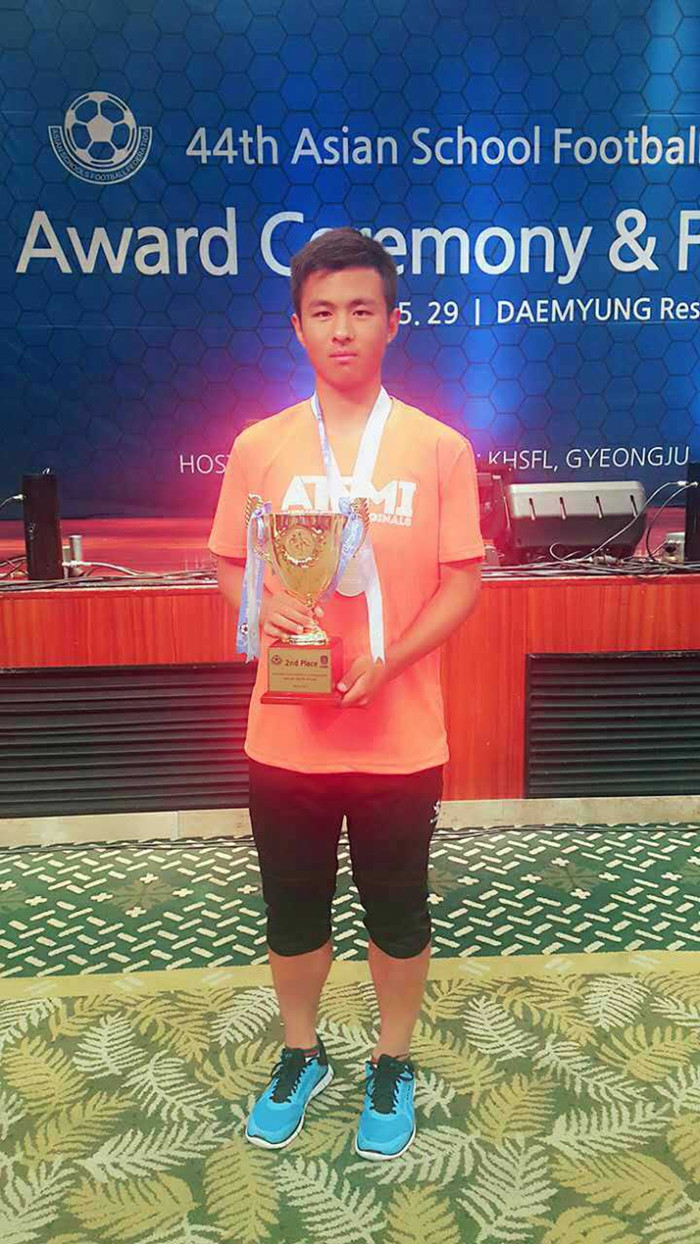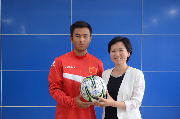 窦志刚老师介绍说,主教练裴恩才对刘同乐的评价非常高,说他是一个射手性的球员,也是本届国家队重要的球员。刘同乐同学也说:“在国外最深的体会就是看到五星红旗挂在那里,我们就热血沸腾,拼尽全力也要为国争光!另外,通过这样的比赛,我们也能够更加清楚地了解强手的水平,准确定位自己,寻找更好的突破。” 他说首场与泰国队的比赛,让他印象很深刻。泰国队曾获得过十四次这项赛事的冠军,队中还有个队员是今年英超冠军莱斯特城的青训球员,实力非常强劲,但泰国队最终还是败给了中国队。“足球是11个人的运动,团队精神很重要,这对我今后无论是踢足球还是工作和学习,都有很大的帮助。”刘同乐也对教练们精心的指导和学校的关心支持表示感谢。