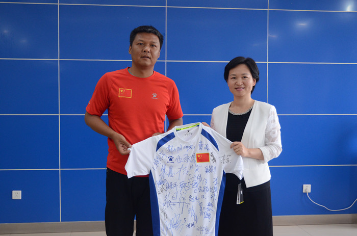 窦志刚老师把签满队员名字的队服亲手递交给马校长