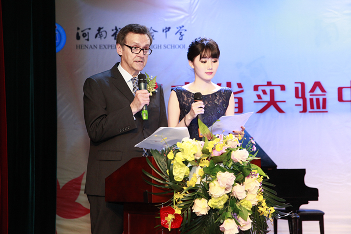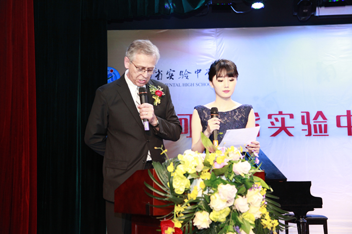 加拿大新斯科舍省教育部驻河南省实验中学中加班加方副校长Ron Sampson宣读表彰决定