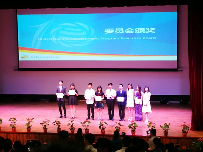 7月19—24日,2016年复旦大学国际中学生模拟联合国大会暨10周年庆典在复旦大学附属中学青浦校区举行,我校受邀并派出模联团队一行12人参加了大会发挥出色,继2013年和2015年之后再次荣获”最佳组织奖”,宋诗枫和王雨涵同学荣获“最佳代表团奖”。