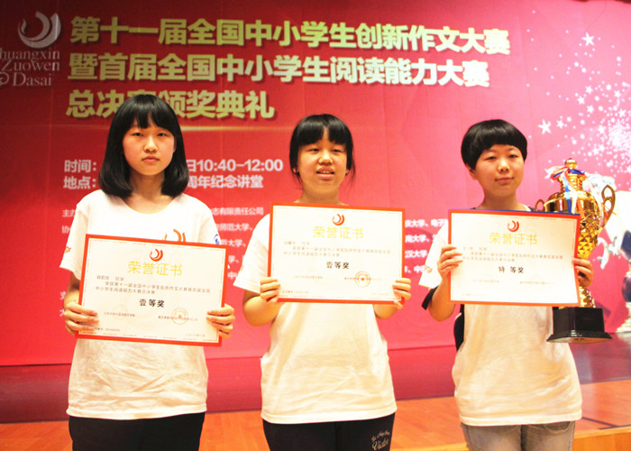 在今年5月15日举行的第十一届全国中小学生创新作文大赛暨首届全国中小学生阅读能力大赛河南赛区决赛中,我校王一帆、杜文露两位同学获得特等奖,艾阳获得一等奖,另有20名同学荣获二等奖,我校共有23名同学进入全国总决赛,我校也成为河南省获得此项大奖最多学校。