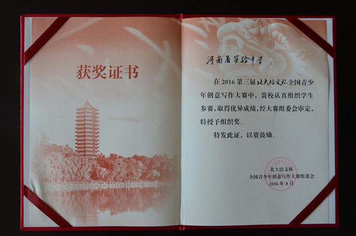 我校获“北大培文杯”全国青少年创意写作大赛组织奖