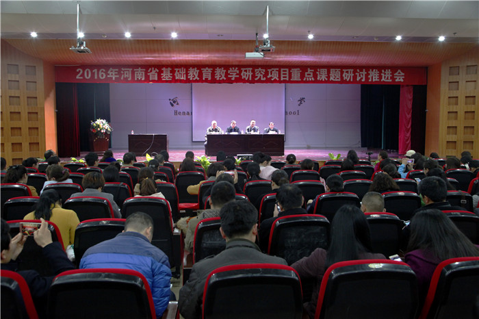 2016年河南省基础教育教学研究项目重点课题研讨推11月18-19日,“2016年河南省基础教育教学研究项目重点课题研讨推进会”在我校艺体中心报告厅成功召开。来自全省各地市的200多项重点课题组核心成员、课题管理教研员、68所河南省校本教研实验学校教科室主任以及“国培计划(2016)”——河南省乡村教师访名校项目“特岗计划”省实验中学培训班的学员共500多人参加了此次会议。