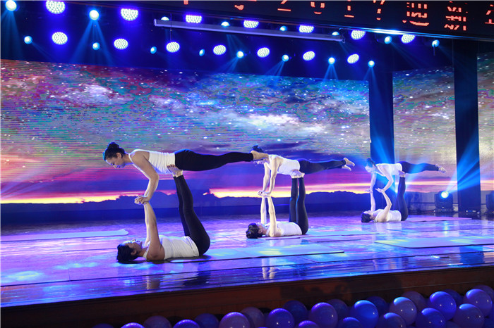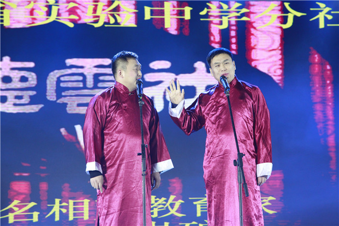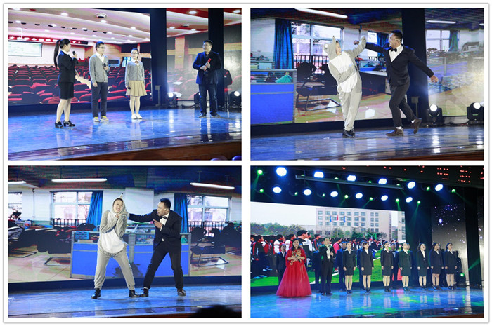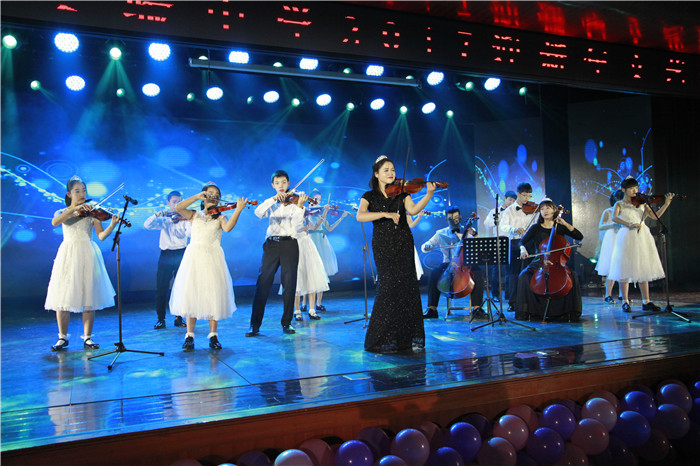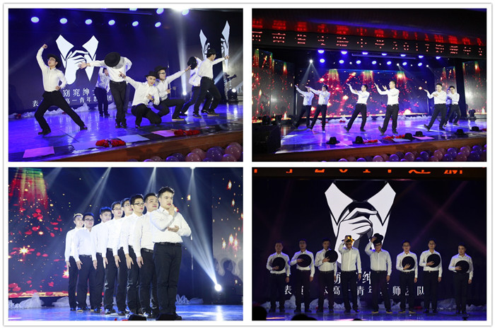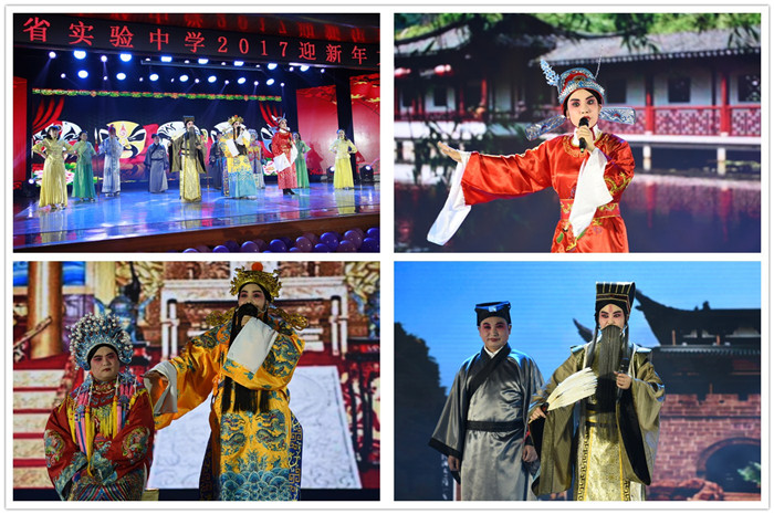晚会在身着节日盛装的校领导和中层合唱《祝福歌》中拉开序幕,领导们把感谢和祝福送给温馨相伴的家人和同事,也送给不断发展腾飞的学校。晚会节目精彩纷呈,所有节目全部源自教职工的才华创意和精心设计,不但充满协作共进的正能量,还洋溢着真挚动人的深厚情感和令人赞叹的灵感才华。校管弦乐团华彩首演,作品《星球大战》、《少林少林》、《康康舞曲》赢得满堂喝彩;文博初二的舞蹈《开门红》,文博初一表演的歌伴舞《隐形的翅膀》,本部高一表演的舞蹈串烧《窈窕绅士》,文博高二表演的歌舞《屯里的funk》,不但展示了年青老师们的多才多艺和形象魅力,还把欢快热情和动感热辣的体验传导给大家,令人赞叹不已;文博高三年级创编的相声《我爱大实验》,英才中学表演的小品《欢乐英才人》,本部高二表演的小品《三国两拍传奇》都妙趣横生,引得师生们捧腹大笑,幽默智慧,设计新奇,把大家的热情推向了高潮;本部初二表演的戏曲联唱黄梅戏《女驸马 》、豫剧《 三哭殿》、越调《收姜维》,思达外国语小学表演的瑜伽《静影梵音》,国际部牛炳华主任带来的配乐诗朗诵 《人民万岁》从各个侧面显示了实验教师团队丰富的兴趣修养和高超艺术水准,晚会的气氛被一次次点燃;校管弦乐团的弦乐合奏 《多瑙河之波》(片段)、《巡逻兵》,校舞蹈队表演的舞蹈《茉莉花》和《年年有余》,艺术精湛、富有感染力,更是给大家带来了一场水平极高的视听盛宴,令人深深陶醉;作为学校靓丽一景的航空班,师生浓情奉献的诗与歌《蓝天的歌颂》不但形式活泼,内涵深刻,也透射出神圣的使命感和建功报国的坚强信念;还有小明星李泽熙、扈镇麒、董博臻、樊有鹏等炫酷青春《鸭梨大》,活力四射、动感酷炫,赢得全场的热烈掌声。这是学校支持学生特长发展的重要成果,也是学校艺术教育的精彩剪影;离退休老干部们集体表演的合唱《我的祖国》和《保卫黄河》精神饱满,歌声嘹亮,令人肃然起敬,感动不已;最后由杜瑜、楚贺等老师们合唱《河南省实验中学校歌》,声韵铿锵,气势磅礴,全体实验人不由自主随着旋律合唱起来,晚会在经久不息的掌声中精彩落幕。