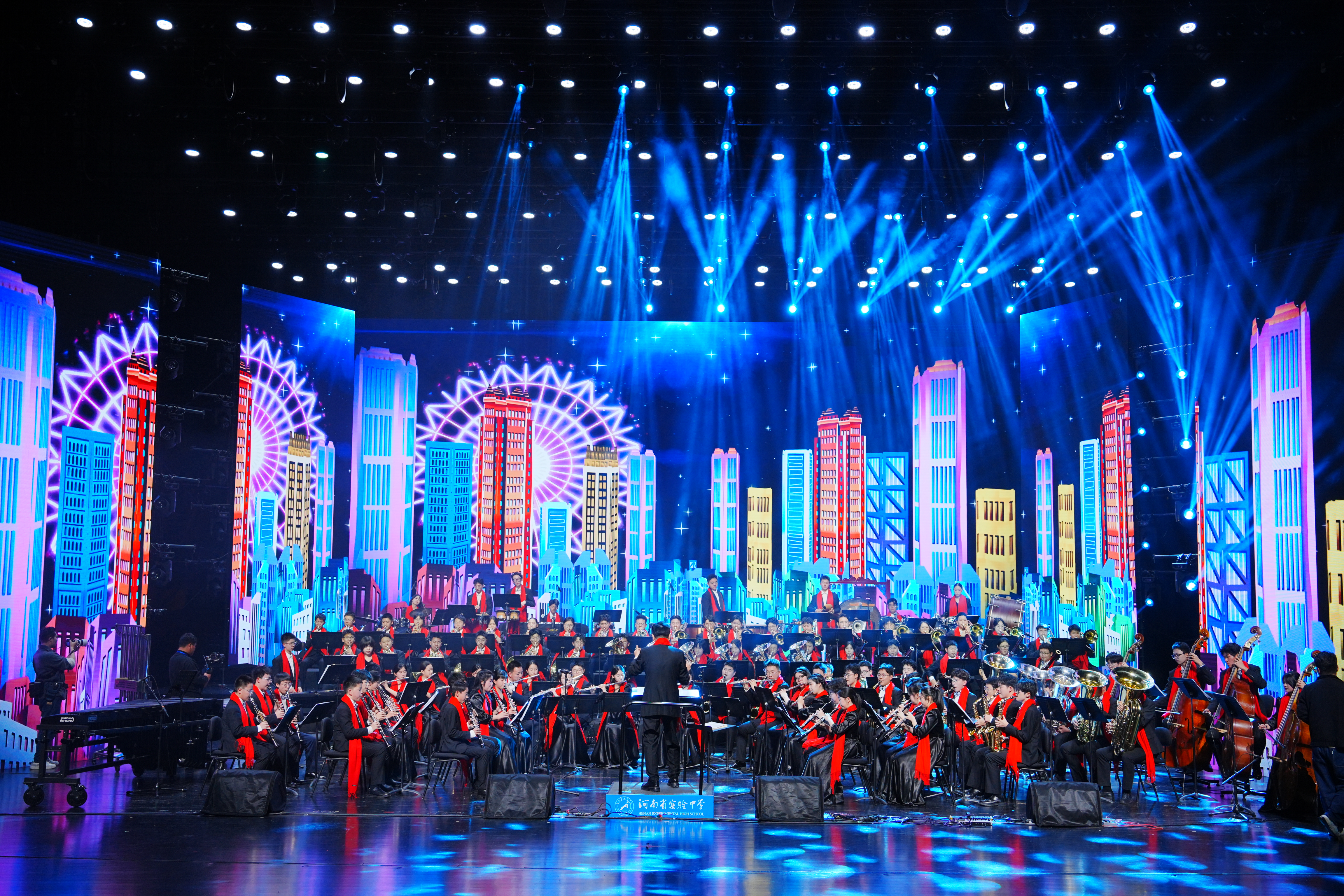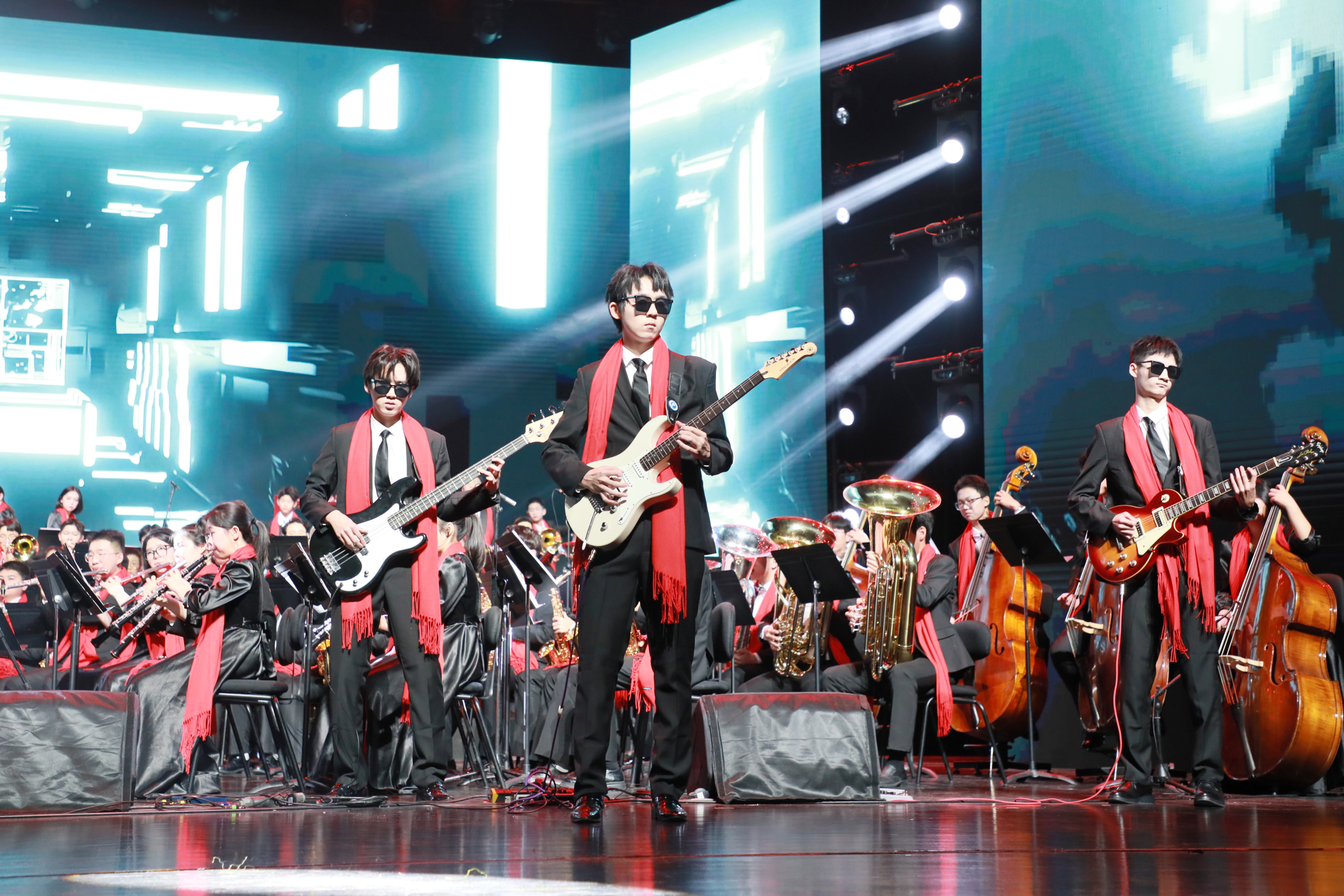 当《彩云追月》的东方诗境邂逅《库洛莱娜的姑娘》的异域风情,实验学子自如穿行于多元文明之间。从《莫吉托》的现代律动,到《碟中谍》主题曲的戏剧张力,再到《世间始终你好》的家国豪情,舞台上流淌的是音符,更是文明对话与青春创造。上半场在《康康舞曲》奔放的狂欢中收束,这既是一次精湛的演绎,更是一幅“各美其美,美美与共”的育人图景,学子们以开阔的视野与融通的才情,展现着全面发展、面向未来的生命样态。