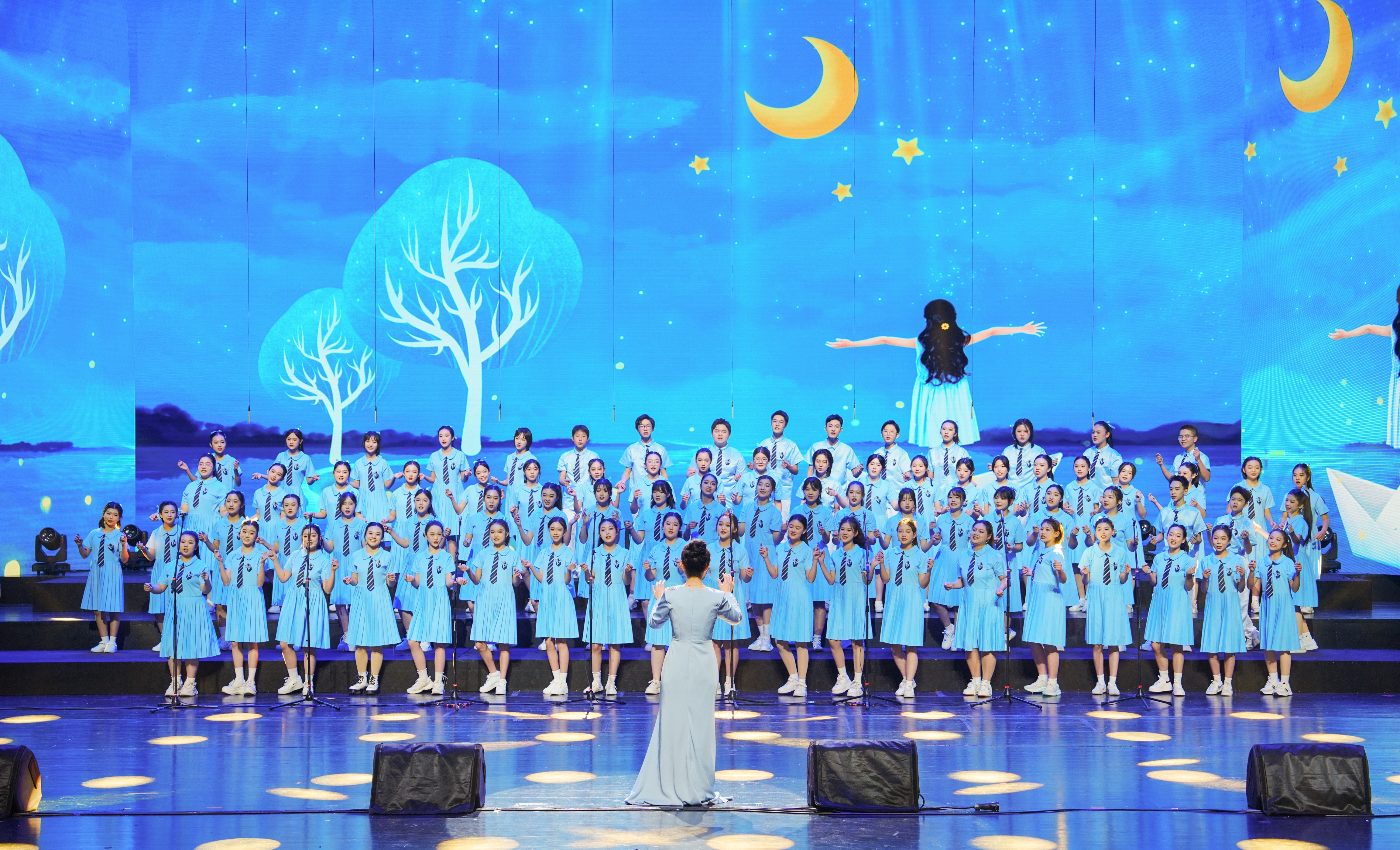 余音与泪光中,校合唱团的成员们安静上场,当第一声“亲爱的你啊”唱出时,舞台完成了从历史叙事到时代抒情的完美升华。这不仅是节目的精心设计,更是实验美育的深刻诠释:它让少年在艺术中理解个人与时代的血脉联系,让“盛世中华”成为可感可泣的精神共鸣。